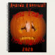 Pumpkin mit einem traurigen Gesicht von Flammen geschnitzt