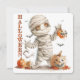 Pumpkin Tropfen - Mama mit einer Sweet Scare Ein Cartoon Mummy in weißen Bandagen verpackt steht mit breiten, orangen Augen und einem schelenden starren starren. Eine Hand klebt eine tropfende Jack-o’-Laterne, die andere hält einen lockeren Band. Rund um die Mumie strahlen drei geschnitzte Kürbis mit Persönlichkeit, Fledermäuse flattern im Hintergrund und Herbstblätter streuen sich über den Boden. Das Design verbindet den spöttischen Charme mit der spielerischen Einstellung, die Halloween Feststimmung mit kühnen Farben und skurrilen Details einfängt.