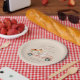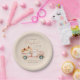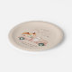 Niedliche, geschlechtsneutrale Teller für Ihre Herbstdusche mit "ein süßer Kürbis ist auf dem Weg" in schlichter grauer Typografie und einer Terrakotta-Schrift mit Herzschlag und Aquarellfarben eines Vintagen Lastwagens, der orangefarbene Kürbisse und cremefarbene Blumensträuße trägt. Geben Sie auf Wunsch das Geschlecht des Babys an (z.B. "ist unterwegs").