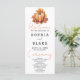 Mit unserem White Bliss Wedding Program können Sie die Essenz des Herbstes in stilvollem Stil erfassen. Freuen Sie sich auf ein zeitgenössisches und subtil böhmisches Design, das sich perfekt für Hochzeiten im Herbst eignet. Genießen Sie den Geist der Saison mit einem Single, der den Kürbis erweckt, der kunstvoll von einem Wandteppich aus herrlichen Herbstblättern in kräftigen Orangen-, Grün- und Braun-Tönen geschmückt ist. Dieses faszinierende Design verkörpert mühelos die Schönheit und den Charme des Herbstes und schafft eine einladende und malerische Szene. Der Kürbis und die umliegenden Blätter heben sich vor dem weißen Hintergrund hervor und zeigen die Faszination und die lebhaften Farben der Saison. Die Einfachheit des weißen Hintergrunds unterstreicht die natürliche Schönheit des Designs und bietet eine elegante und frische Ästhetik, die jedes Hochzeitszenario ergänzt. Der Schwarzweißtext in einem einfachen Schriftart sorgt für Klarheit und Lesbarkeit und liefert wichtige Informationen über die Zeremonie und die Hochzeitsfeier auf der Rückseite des Programms. Um jedoch eine Touch von Launen und Eleganz hinzuzufügen, werden die Worte "Welcome", "Ceremony" und "Wedding Party" in einem hübschen Schriftart mit dekorativen Schriften zart präsentiert. Dieser Script-Schriftart fügt ein Element der Gnade und des Charmes hinzu und schafft einen angenehmen Kontrast zur strukturierten Einfachheit des Schriftartes. Wählen Sie unser White Bliss Wedding Programm, um Ihre Herbstfeier mit einem Gefühl von Verzauberung und Raffinesse zu bereichern. Es dient nicht nur als Orientierungshilfe für Ihre Gäste, sondern auch als geschätzter Sake, der den magischen Geist Ihres besonderen Tages verkörpert.