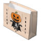 Entspannen Sie mit diesem Geschenksack "Trick or Treat" mit Kürbisvampir. Dieses charmante Design, das perfekt zu Halloween-Festen ist, kombiniert eine klassische Jack-o'-Laterne mit einer Drehung. Egal, ob Sie es mit Leckereien, Gastgeschenken oder unheimlichen Überraschungen füllen, diese Tasche wird sicher einen Hauch von köstlichem Schrecken zu Ihren Feiern hinzufügen. Ideal für Trick-oder-Läufer jeden Alters, es ist die perfekte Mischung aus niedlich und gruselig.