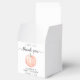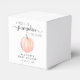 Eine niedliche, geschlechtsneutrale Babyduschbox mit pastellorangefarbenem Kürbis, "ein kleines Dankeschön" und "ein süßer Kürbis ist auf dem Weg", geschrieben in schlichter grauer Typografie und einem stilvollen Drehbuch mit Wimpern. Personalisieren Sie einfach den Namen und das Duschdatum der Mutter, indem Sie die graue Typografie koordinieren. Geben Sie auf Wunsch das Geschlecht des Babys an (z.B. "ist unterwegs").