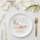 Niedliche, geschlechtsneutrale Teller für Ihre Babydusche mit "A Sweet Little Pumpkin Is On its Way" in moderner grauer Typografie und stilvollem Drehbuch mit einem Herzschlag und einem Aquarellbouquet mit einem orangefarbenen Kürbis, Blumen und Grünpflanzen. Personalisieren Sie sich mit dem Namen der Mutter in der einfachen modernen grauen Typografie.