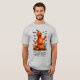T - Shirt der Herbstsaison mit Kürbismacher, Kürbislaternen und Fledermäusen. Fügen Sie unten im Bild schwarzen, gedruckten Text hinzu. Der Wortlaut der Proben hat den Betriebsnamen, den Standort und die Stunden für ein Maislabyrinth. Oder nutzen Sie es, um Kürbispflaster, Heufahrten, Halloween-Party oder andere saisonale Spaß zu werben.