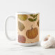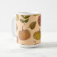 A watercolour pencil drawing of pumpkins and autumn leaves.