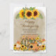 "Happy Thanksgiving"-Urlaubskarte mit orangen und weißen Kürbissen, gelben Sonnenblumen und einem rustikalen Picketzaun. Text ist anpassbar, also schreiben Sie Ihre eigene Nachricht. Fügen Sie Ihren Namen hinzu.