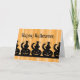 Glückliche Halloween-Grußkarte mit lustigen orangefarbenen Streifen und schwarzen Katzen und Kürbis-Silhouetten, niedlich und lustig.