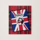 Funny Punk guineafowl Vogel Collage mit einem mohican Mowhawk Haarstil mit einem anarchischen Text mit einem rot-weiß-blau britischen Gewerkschaft Jack und einem königlichen Stewart Scottish Tartan Hintergrund. Für die passende Guinea von Geflügelprodukten und mehr unterhaltsame Tierfiguren besuchen Sie die VINTAGEPRINTSORE.
