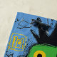A playful street art character with spiky punk hair holding a bright electric guitar. The artwork mixes graffiti splashes, sketchy lines and bold colors to create a chaotic urban vibe inspired by punk music and underground street culture.