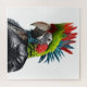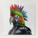 Funny Punk Rocker Parrot mit mohikanischem Friseur und Lederjacke.