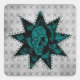 Punk Skull Square Sticker, Schwarz und Aquamarin Quadratischer Aufkleber