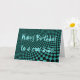 Ein warpy retro 80erschachbretmuster im Schwarzen und Türkis auf einer Grußkarte, die liest "alles Gute zum Geburtstag zu einem coolen Typ!" auf der Front und auf dem Innere liest sie "hat Spaß und versucht, keine Gesetze zu brechen!". Sie können den Text zum Anzug leicht ändern Ihr Bedarf. Groß für jugendlich Jungen oder junge Erwachsene.