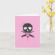 Niedlicher Schädel in den Knochen-Mitteilungskarten mit Wimperntusche haftet für die gekreuzten Knochen.
