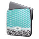 Punkt und Zebra: Monogramm-Laptop-Hülse: Blaue und weiße Punkte.