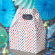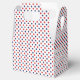 Diese Geschenkbox ist in einem roten, weißen und blauen Punkten-Druck gezeigt.