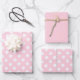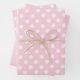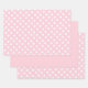 Dieses pastellrosa (#FFD1DC) Geschenkpapier-Set enthält drei aufeinander abgestimmte Bögen: zwei sind mit zarten weißen Punkten verziert und einer ist einfarbig pastellrosa für einen sauberen, modernen Kontrast.