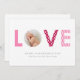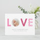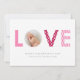 Rosa und rote Streifen und Punkte füllen das Wort LIEBE. Ihr Foto sitzt in O. Set auf einem weißen Hintergrund.