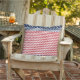 Kissen im Freienkennzeichnet Zickzack Streifen und Polkapunkte in patriotischen USA rot, weiß und im Blau.