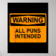 Puns Are Intended Funny Warning Sign Sarcastic Hum Poster