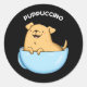 Pup puccino Funny Cappuccino Pun Dark BG Runder Aufkleber