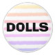 Puppen sind in schwarzem Text geschrieben. Gelb, pfirsichfarben, rosa, lila Streifen in Aquarellfarben vor weißem Hintergrund. Farbenfroh für Kommoden, Schränke, Kinderplastikorganisatoren mit Schubladern, die als Heimwerkerzubehör hinzugefügt werden können. Original Design © TamiraZDesign.
