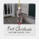 Puppies First Christmas holiday ornament. Design futures your favorite photo, decorative accent paw print with knock out heart in red and whimsical lettering.