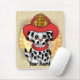 Puppy Hund Firefighter Mousepad von ArtMuvz Illustration, passend zum Firefighter Bekleidung, Feuerwehrgeschenke, Fireman T - Shirt. Feuerwehrschiff-Shirt, Feuerwehrgeschenke und lustige Feuerwehrbekleidung, Geschenke. Sie können Ihren Namen hinzufügen oder Text hinzufügen. Passen Sie dieses Feuerwehrhundemousepad an, um es einzigartig zu machen oder als personalisiertes Geschenk zu geben. Das kühne Design ist mit einem Feuerwehrmann DOG, dem Symbol der Feuerwehr, ausgestattet. Es ist perfekt für Feuerwehrleute, ihre Familien und Freunde, oder alle, die will, ihre Wertschätzung für diese tapferen Helden zu zeigen
