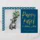 Puppy Kisses Paw Print Foto Foil Blue Holiday Card. Dieses Design zeichnet sich durch Skripttypografie in realer Folie und ein Pfotendruckmuster auf der Rückseite aus. Fügen Sie ein Foto Ihres Haustieres hinzu und personalisieren Sie Ihren persönlichen Gruß.