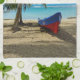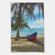 Pura Vida in Costa Rica. Boot auf einem tropischen Strand mit Kokospalmen und karibischem Meer im Hintergrund, Puerto Viejo de Talamanca - Costa Rica