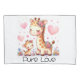 A tender moment between a loving giraffe mom and her baby, captured in a heartwarming illustration that radiates warmth and care.