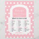 Sie suchen ein Brautparty Party Spiel, das nicht wie alle anderen ist? Nun, dieser ist für dich! Dieses Brautparty-Spiel mit Geldbörse ist ein echtes Geldbeutel-Design als Spielbrett. Die Handtasche hat die Wörter "Was ist in Ihrer Handtasche?" und die Brautparty-Teilnehmer können das, was in Ihrer Handtasche ist, absetzen und die Gesamtpunkte addieren - alles in der Handtasche. Die weiße Handtasche erscheint auf einem rosa und weißen Polka Punkt Hintergrund. Sie können das Design sogar mit dem Namen der Braut und dem Datum des Brautparty anpassen. Dies ist eine lustige Drehung zum Brautparty Party Spiel! Copyright henishouseuse paper