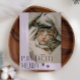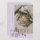 Niedliche und lustige Weihnachtsgeschenkkarte für Katzenbesitzer mit Typografie-Text, der "Purrtly Merry" mit einem Foto der Kätzchen sagt. Der Hintergrund ist lila.