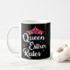 Dieses Design zeigt eine schöne Abbildung von Königin Esther, der Heldin des jüdischen Feiertages von Purim, mit einer Krone und einem Zepter. Sie steht vor einem festlichen Hintergrund von Stars und einem Banner mit den Worten "Purim Party".