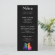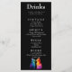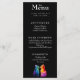 Dieses lebhafte Hochzeitsmenü trägt den Geist der Liebe und des Stolzes der Einladung mit zwei in Regenbogenfarben gehaltenen Katzen, die am Fuße beider Seiten versteckt sind. Ihr ausdrucksvoller Blick und ihre strahlenden Farbtöne - die die LGBTQ+-Stolzflagge widerspiegeln - verleihen dem Design Leidenschaft und Individualität. Die Vorderseite des Menüs zeigt die Speisenauswahl in einem gepflegten, modernen Schriftart, elegant strukturiert mit einem schwarzen Hintergrund. Jeder Kurs wird mit Sorgfalt aufgelistet, um Klarheit und Raffinesse für Ihre Gäste zu gewährleisten. Von Vorspeisen bis zu dekadenten Desserts - die Gestaltung ist praktisch und optisch atemberaubend. Dreh die Karte, und die Feier geht weiter - diesmal mit einem kuratierten Getränkekarte. Cocktails, Weine und alkoholfreie Getränke werden gepflegt präsentiert und laden die Gäste dazu ein, ein Glas zu Ehren der Liebe in all ihren Formen zu züchten. Das durchdachte und leicht zu personalisierende Menü sorgt dafür, dass jede Tischumgebung Ihre einzigartige Liebe widerspiegelt. Fett gefärbte Farben, zarte Symbolik und ein Hauch von felinem Charme.