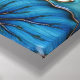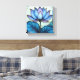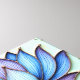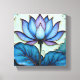 Art Nouveau ceramic tile with a blue and purple lotus flower with green leaves, detailed veins, and a brown stem, set against a light green background with decorative swirls in the corners.