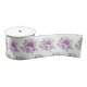This fun and whimsical ribbon features purple and silver elegant flowers.