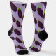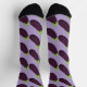 Vibrant food themed socks patterned with purple aubergine vegetables on a soft lilac background colour