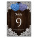 Purple Blue Floral Lace Rustic Wood Tischnummer