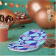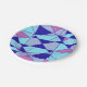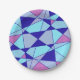 This simple paper plate has an abstract triangle pattern that features purple, blue, and pink colors.