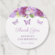 Wir danken Ihnen für jede Veranstaltung (hier für eine Geburtstagsparty gezeigt, aber alle Textfelder sind anpassbar). Das Design umfasst lavendelfarbene Blume, begleitet von lila Schmetterlingen.
