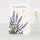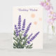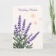 Schöne bläulich-violette Blume auf blassblassfarbenem Hintergrund geben Geburtstagswünsche für Freunde oder Familie.