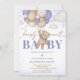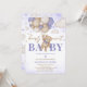 Get ready to welcome your baby girl with this dreamy Purple Boho Bear Girl Baby Shower Invitation. This design features an adorable brown teddy bear with a purple bow holding a bunch of purple and brown balloons floating among soft clouds and scattered stars. With gentle pastel tones and boho accents, this invitation adds a magical touch to your celebration and is ideal for a baby girl shower with a soft, cozy vibe. BBS655