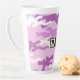 Show your support and pride with this unique lavender and pink camouflage design, featuring a bold personalised text. This eye-catching pattern is perfect for anyone who wants to represent their military connection with a touch of feminine flair. The soft pastel colors combined with the classic camo shapes make it a stylish addition to any kitchen or office. Enjoy your favorite hot beverage in this specially designed mug, a great way to honor service and dedication.