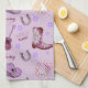 Add a touch of Western charm to your kitchen with this personalized cowgirl tea towel! Featuring a fun all-over pattern of cowgirl boots, hats, guitars, and horseshoes in lovely lavender tones, this towel is both stylish and practical.