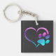 Purple Cyan Dog paw Print Heart Schlüsselanhänger