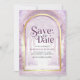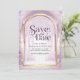 Amaze your guests with this lovely fairy tale theme wedding save the date featuring a beautiful castle and majestic arches with modern typography.