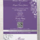 The front showcases romantic purple florals, soft line art flowers, and a refined layout that includes a QR code for RSVP, a wedding website, and personalized details. The bottom panel tears off into a menu card your guests can bring to the reception — a beautiful and practical touch that also saves money and paper.