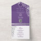 Celebrate your day with this elegant purple floral all-in-one wedding invitation featuring your photo, a matching detachable menu card, and an eco-friendly envelope-style design.