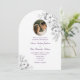 Celebrate your day with this elegant arched wedding invitation featuring a refined purple background, delicate white floral line art, and a beautifully framed photo of the couple. The modern arch shape provides a stylish, upscale look, while the minimalist layout keeps every detail easy to read.