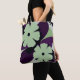 This modern tote bag features a bold yet calm floral design in soft green and deep purple tones.
